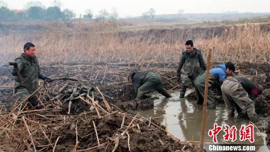 中新網荊門1月8日電(吳奇勇 鄭耘)天子驕子,不幸身患絕癥,被迫休學后,回到家鄉發展養殖業堅強自救,湖北荊門青年彭云南自強不息的故事在當地引起很大反響,人們紛紛向他伸出援手。8日,記者再次來到彭云南的家中,寒風中,當地義工正在為彭云南家挖蓮藕,大家的熱心在這個寒冷的冬天溫暖著彭云南。