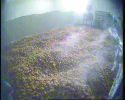 老板們還說,這些晾曬的桃肉都是經過腌漬加工過的。而腌漬桃肉的地方就是路邊的這些露天水泥池。記者在路邊看到:一個大水泥池里泡著5萬斤左右的桃肉,旁邊垃圾遍地,污水橫流,骯臟不堪。掀開蓋著水泥池的塑料膜,里面浸泡著的桃肉,有很多已經腐爛變質。