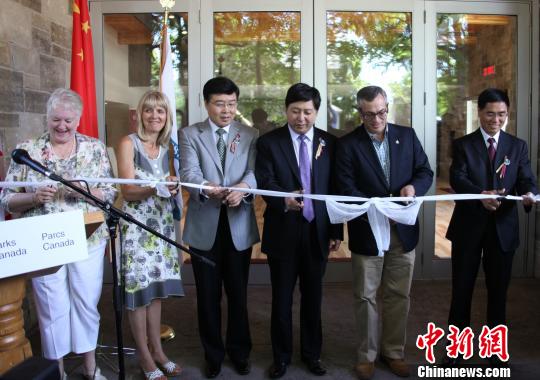 加拿大國會議員托尼?克萊門特(右2)、中國駐多倫多總領事房利(左3)、白求恩國際和平醫院院長吳廣禮(右3)、中國白求恩精神研究會副秘書長李深清(右1)在開幕式上共同剪彩。