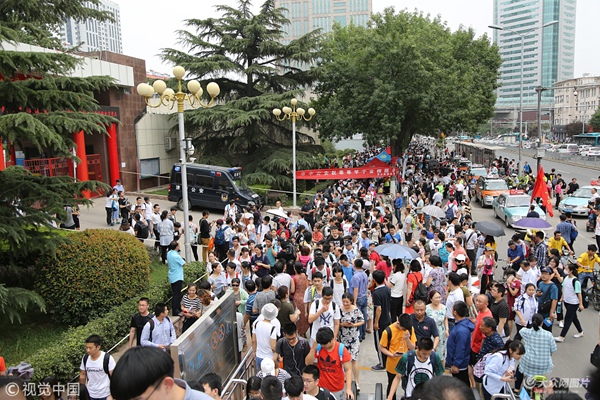 濟南:高考考點外人山人海 家長滿心期待 (/)