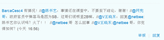 陳書藝在微博留言中回應稱,“事情還在調查中,不要妄下結論,謝謝!”
