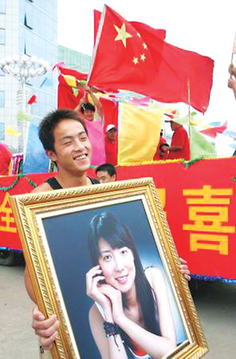 在鮮艷的五星紅旗和雄壯的國歌襯托下,這位22歲的中國姑娘越