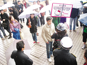 昨天(4月11日)下午,在蘇州鬧市區——觀前街上,一位從日本留學歸來的乙肝病毒攜帶者鋤草(化名),因家人不肯與其共餐,舉著牌子,“征人吃飯”,引發眾多市民和游客圍觀,一時還驚動了城管。最終,鋤草成功邀請到了1位市民,共享了一頓溫馨而感人的晚餐。