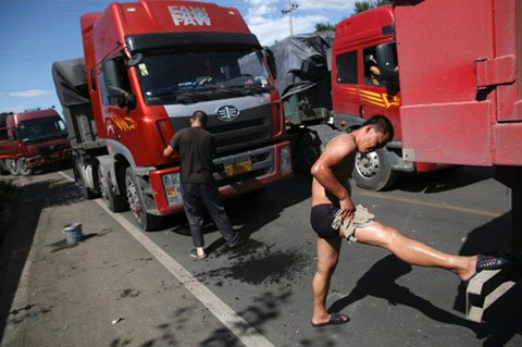 2010年8月 京藏公路大堵車 司機高速洗澡