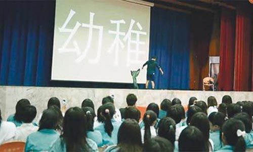 中新網12月21日電 據臺灣《聯合報》報道,臺灣知名作家九把刀繼9日到新竹關西高中演講,頻以豐富“語助詞”增添演說生動性,引發校長做結論跟著爆出粗口后,日前到臺南女中演講時,又有脫下長褲的意外之舉,引起學生驚聲尖叫。