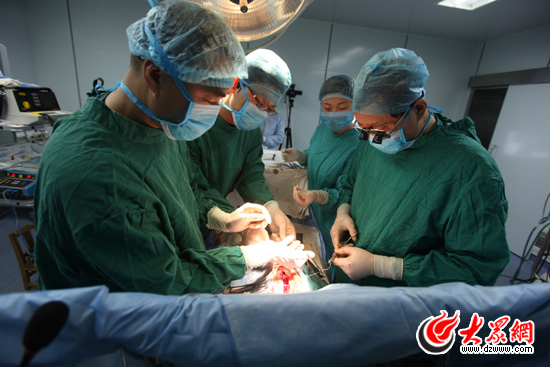 為了確保此次手術的成功,濟南軍區心血管研究所派出了在國內堪稱一流的團隊,由濟南軍區總醫院小兒心臟外科主任、心血管病研究所所長喬彬主刀。大眾網記者分別在手術室和設有監控的會議室對手術進行著直播。