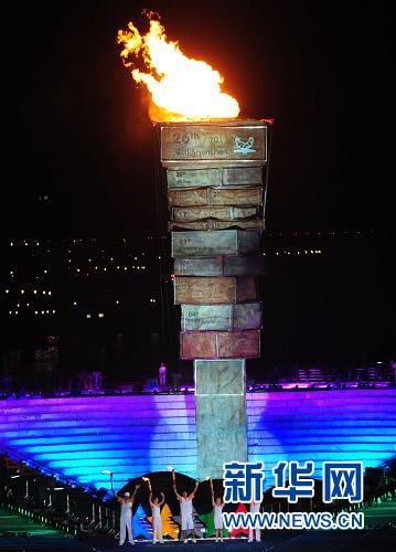 8月12日,第26屆世界大學生夏季運動會開幕式在深圳舉行。這是主火炬被點燃。 新華社記者王頌攝