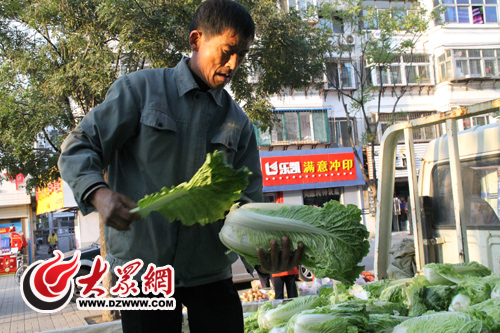 早晨10:00,第一輛“愛心白菜車”來到位于花洪路西段路南的花園小區銷售點。一看到“大眾網今冬請吃愛心菜直銷車”的橫幅,附近的居民便紛紛上前購買大白菜,你買兩棵我買三棵,你買一口袋我裝一小推車,不一會的功夫,“愛心菜直銷車”前就擠滿了前來購菜的愛心市民,其中包括早已等候多時的大眾網“奔騰車友會”的網友們。不少駕車路過的市民也趕緊停下車,擠到直銷車前“搶”上幾棵大白菜。臨到中午的時候,一車足有8000斤的大白菜已經賣了一半。