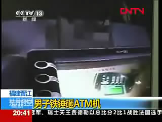 福建晉江:男子鐵錘砸ATM機