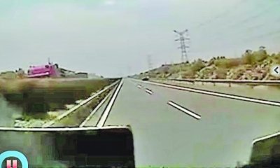 而該車也是揚子晚報在上周日最先報道的那輛紅色大貨車。視頻中,該車與“最美司機”吳斌駕駛的大巴車瞬間擦過,致命鐵片隨即飛出。丁波