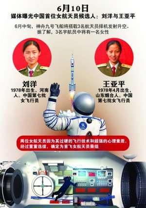 媒體曝光中國首位女航天員候選人:劉洋與王亞平