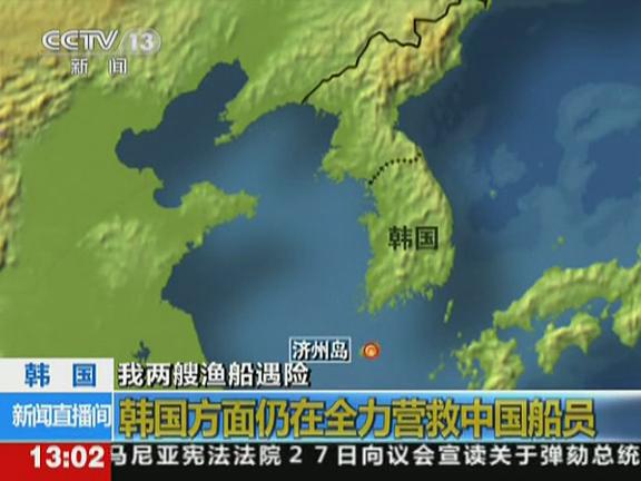 在韓國濟州島海域分別沉沒和觸礁的兩艘中國漁船上共載有33人,目前已有18人獲救,5人確定遇難,搜救行動仍在進行中。當地時間28日凌晨2時40分左右,受15號臺風“布拉萬”的影響,山東威海市的“粵江城漁”91104號和“粵江城漁”91105號兩艘漁船在濟州島西歸浦市和順港東部防護堤以南1.8公里處分別沉沒和觸礁……