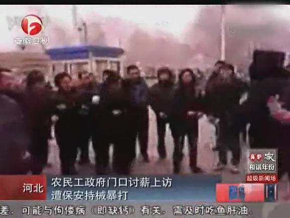 年關將至,幾位在河北務工的四川籍農民工,工資被拖了半年,直到現在還沒有拿到。走投無路的他們來到當地市政府,希望能討個說法。沒有想到,門都沒進,遭到保安的持械暴打。