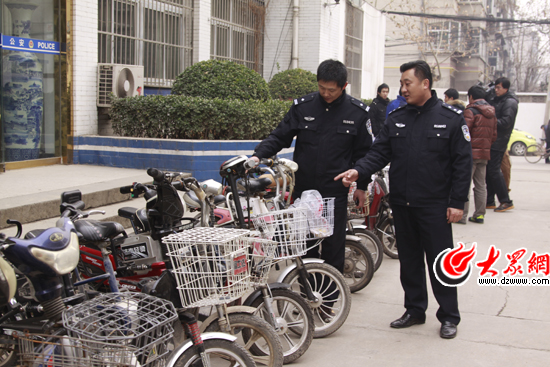 槐蔭公安分局刑警正在檢查被追繳回的失竊電動車