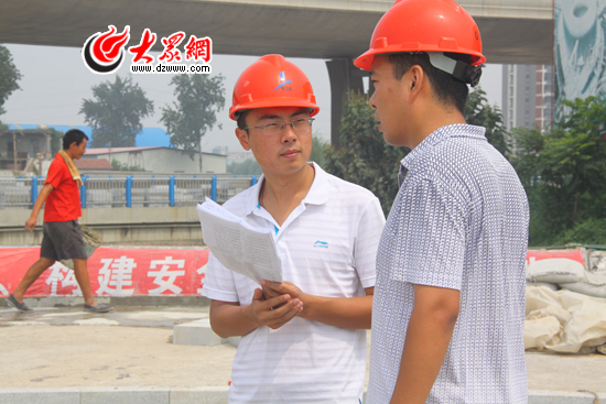 濟南市政局下屬城建集團項目負責人向記者介紹橋梁體檢和施工情況。