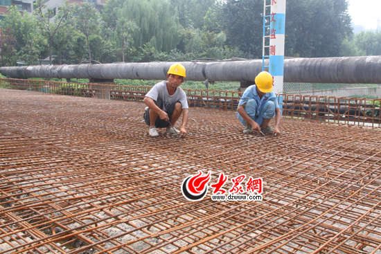 在孟家拆除重建進入收尾,工人們在西側橋面鋪設鋼筋。
