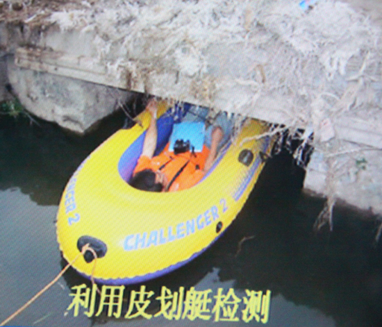 濟南市道橋處利用皮劃艇檢測橋梁安全。(資料圖)