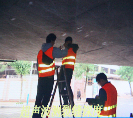 道橋處工程師利用超聲波檢測橋梁裂縫。(資料圖)