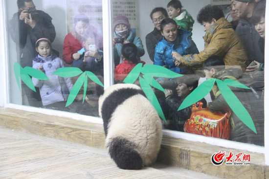 為了能夠在第一時間看到大熊貓,家住歷城唐冶片區的孟先生一家三口早早的就已經等在了熊貓館的門口。孟先生告訴大眾網記者,他們一家人早上7點就出門,趕了20多公里路才抵達目的地。