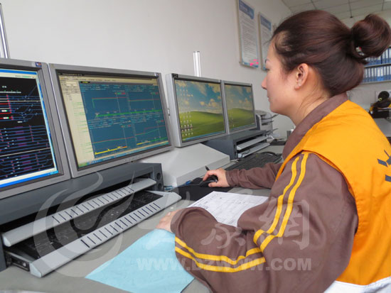 大眾網記者見到趙珊珊時,她正在熟練地監視著列車的運行情況,并不時地做著記錄。“列車運行的所有數據都在這里,這條線顯示的是列車的速度,這些三角代表的是列車線路上的應答器……”她指著電腦屏幕告訴記者,“我們的工作主要就是把當天的列車運行情況逐個分析,查看它們的運行狀態,出現故障信息及時上報。”