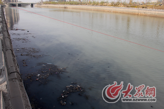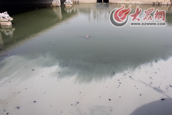由于污水的大量匯入,小清河呈現(xiàn)出白、綠兩色。