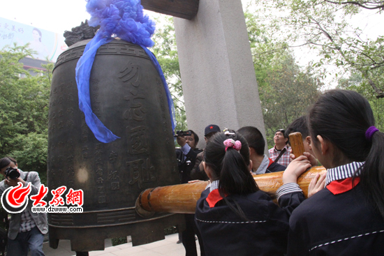 在今天的紀念活動中,民革山東省委、山東省黃埔軍校同學會的成員,以及趵突泉小學的學生分別向“濟南慘案”烈士紀念碑敬獻花籃,并撞響“濟南慘案”紀念鐘,緬懷遇難同胞。熱心市民韓式濤也向趵突泉公園“濟南慘案”紀念園捐贈了1956年版的《濟南慘案》圖書,他表示希望這本書能夠讓更多的年輕人了解那段歷史。