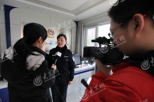 濟南交警支隊市中大隊女子中隊中隊長黃蕾接受記者采訪。(記者 曹亮 攝)