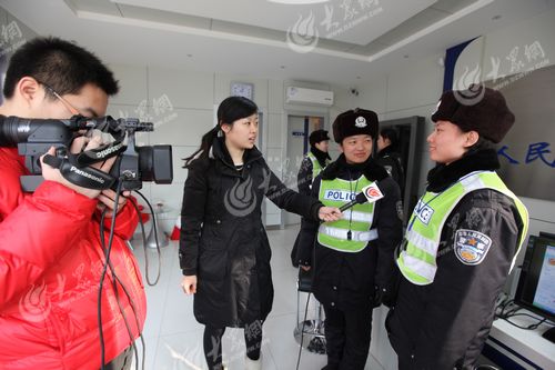 臘月三十,大眾網記者隋喬、盛堃走進女子中隊,采訪民警李東暉、任如菲除夕在一線上工作。(記者 曹亮 攝)