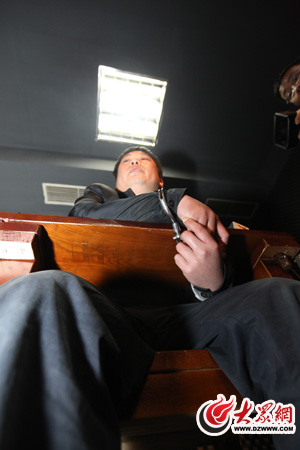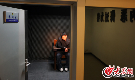 “眼鏡男”在審訊室內(nèi)接受審訊。