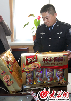 “簡單·愛”在論壇上說:清明假期結束,與朋友坐火車從家中返校,出濟南火車站后,去附近一小商店買飲料。自己買了東西轉身向店外走去,剛邁過收費的桌子踏到門口時,突然身后‘啪’的傳來東西落地聲。隨后店主便開始叫嚷:“哎!你走路不會小心點呀,把我東西弄掉了,看看怎么賠……”轉身望去,一盒玻璃瓶裝的牦牛壯骨粉,內裝的四瓶補品瓶身已摔得粉碎。不一會,二樓下來一名男子,上來就喊:“你干嘛?打了東西要耍賴?”