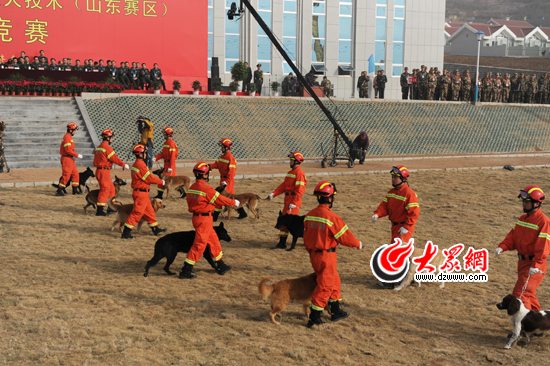 大眾網濟南11月26日訊 (記者 張建 劉芳芳)歷經三天的激烈角逐,全國公安消防部隊第一屆搜救犬技術比武競賽今天在濟南落下帷幕,來自全國的15個消防總隊代表隊120余人、90頭搜救犬在長清搜救犬基地進行了決賽。