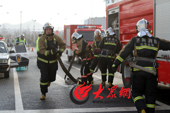 大眾網濟南12月31日訊(記者 尹海洋 韋輝)雪霧天氣下,在高速路上發生交通事故怎么辦?怎樣快速妥善的處理事故?今天下午,濟南市交警支隊與濟南消防、路政、醫療救援等部門組成7小組,在茂嶺山3號路南段500米處舉行了高速公路應急聯動實戰演練。