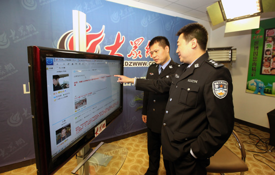 16日上午,濟南市公安局槐蔭分局大金莊派出所所長陳劍和民警回答網友提問。