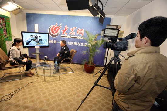 濟(jì)南市公安局歷下區(qū)分局科院路派出所所長肖文兵做客“所長在線”與網(wǎng)友互動交流。(曹亮 攝)