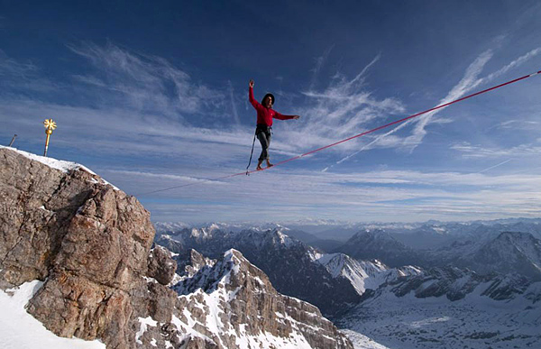 奧地利冒險家在德國最高峰上走鋼絲 ( /3)