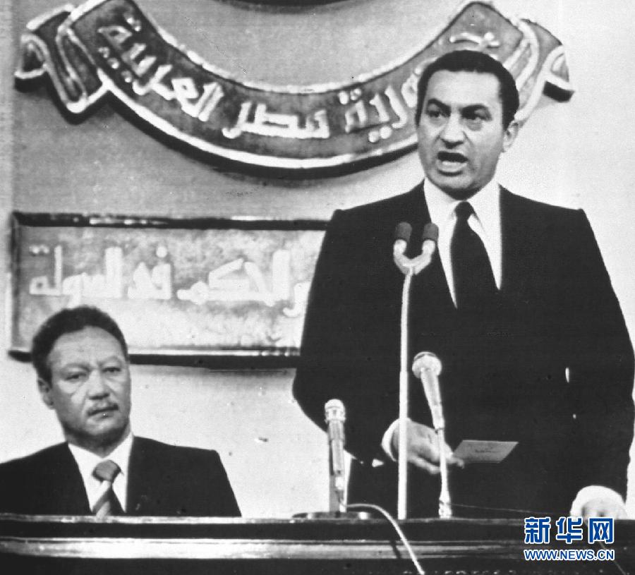 這是穆巴拉克(右)于1981年10月14日在埃及人民議會上宣誓就任總統(tǒng)的資料照片。