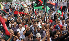 10月22日,一名男子在利比亞的米蘇拉塔為卡扎菲(左)和其兒子穆塔西姆的尸體拍照。利比亞前領導人穆阿邁爾·卡扎菲的尸體目前存放在米蘇拉塔的一個冷藏室。一位不愿透露姓名的人士說,“全國過渡委員會”仍在秘密討論卡扎菲尸體的下葬方式和地點。他說,“過渡委”傾向于將卡扎菲的尸體海葬。新華社記者李木子攝