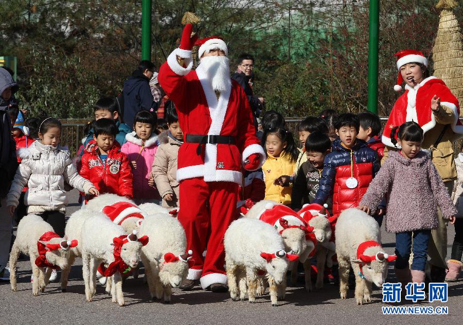 11月24日,在韓國龍仁愛寶樂園,扮成圣誕老人的工作人員帶著孩子們玩耍。 圣誕節(jié)將至,韓國各地紛紛舉行各種活動,提前預(yù)熱氣氛。新華社發(fā)(樸真熙攝)