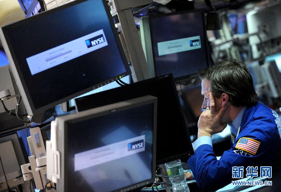 1月13日,交易員在紐約證券交易所內工作。當日,受到摩根大通銀行業績不佳以及標準普爾可能調降法國等歐元區國家主權信用評級的影響,紐約股市下跌報收,結束了此前連續4個交易日收高的走勢。新華社記者申宏攝