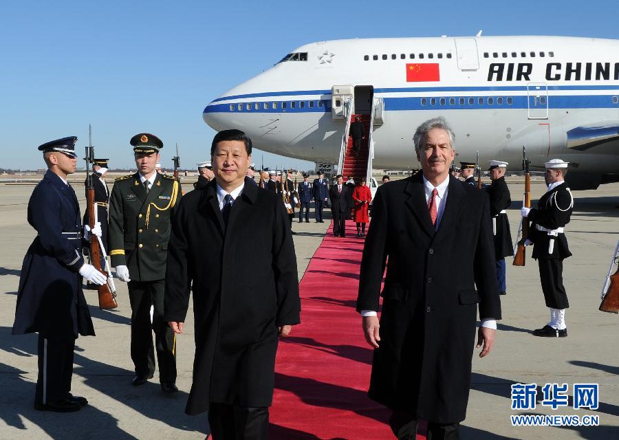 當(dāng)?shù)貢r(shí)間2月13日,應(yīng)美利堅(jiān)合眾國(guó)副總統(tǒng)拜登邀請(qǐng),中國(guó)國(guó)家副主席習(xí)近平抵達(dá)華盛頓,開(kāi)始對(duì)美國(guó)進(jìn)行正式訪(fǎng)問(wèn)。這是美國(guó)常務(wù)副國(guó)務(wù)卿伯恩斯到機(jī)場(chǎng)迎接。新華社記者 劉建生 攝