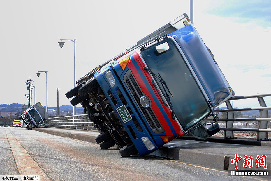 4月3日,日本列島西部地區受快速發展的低氣壓影響出現類似臺風的低氣壓天氣,伴隨有暴風雨產生。目前多地出現人員受傷情況,相關地區交通也受到明顯影響。圖為日本西部富山縣的貨車被大吹翻。