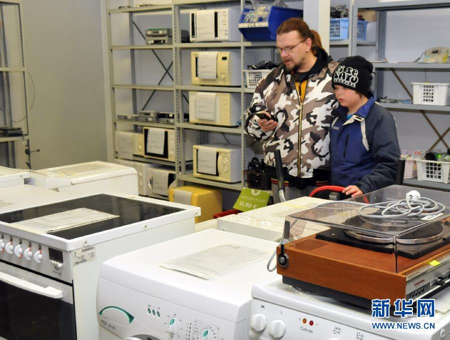 4月5日,一對(duì)父子在芬蘭赫爾辛基回收中心的銷售服務(wù)點(diǎn)選購可再利用的家用電器。位于芬蘭首都赫爾辛基的大型回收中心設(shè)立已有10多年,通過對(duì)回收的廢舊物品進(jìn)行維修、檢驗(yàn)和出售,實(shí)現(xiàn)充分再利用。該中心每年接收當(dāng)?shù)鼐用窈凸酒髽I(yè)送來的基本完好的各類物品170多萬件,大到家用電器、家具地毯、沙發(fā)床墊,小到服裝鞋帽、餐廚用具、書籍光盤……這些物品經(jīng)過維修、檢驗(yàn)合格后,被送到該回收中心在赫爾辛基地區(qū)的5個(gè)銷售服務(wù)點(diǎn)。顧客可以在這些銷售服務(wù)點(diǎn)選購既實(shí)用又便宜的各種用品。新華社記者趙長春攝