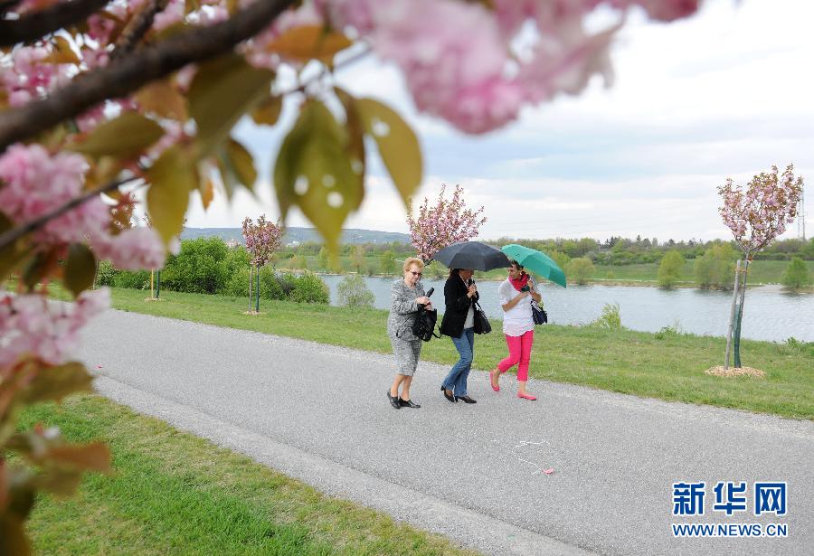 4月19日,在奧地利維也納多瑙島上,游客徜徉在櫻花林里。當(dāng)日,在維也納的日本人團體在多瑙島北段的櫻花林舉行櫻花節(jié)活動,邀請人們來觀賞櫻花,觀看太鼓及歌舞表演,體驗書法、茶道、圍棋及日本美食等。這片櫻花林是日本藝術(shù)家團體于2002年栽種的,是維也納市建市1000周年時作為禮物從日本各界接受的1000棵櫻花樹的一部分。新華社記者徐亮攝