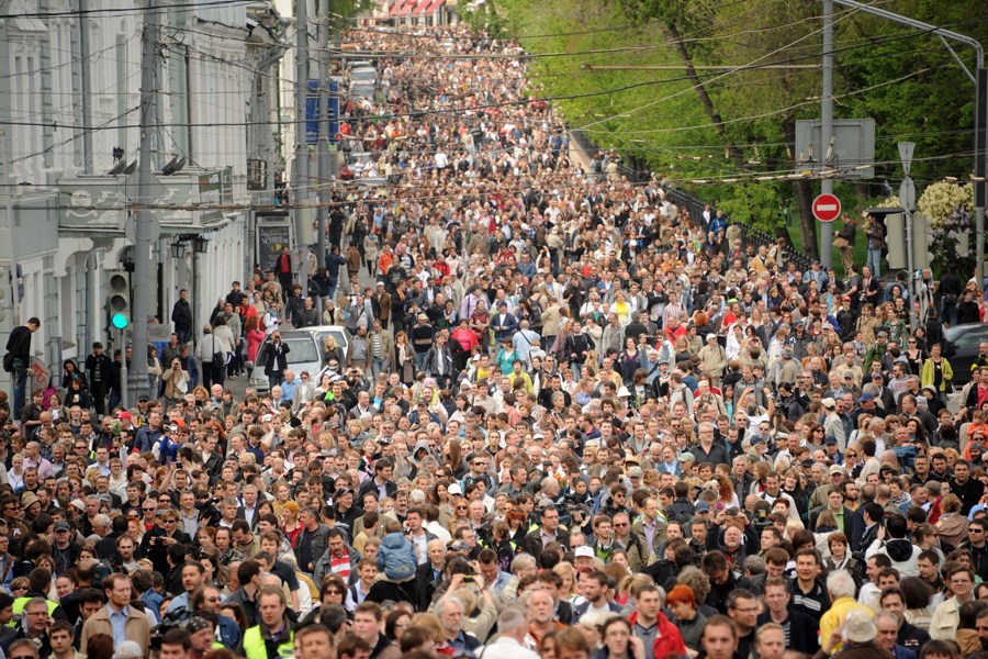 當地時間2012年5月13日,俄羅斯莫斯科,數千名反對派支持者與著名的俄羅斯詩人、作家、音樂人、記者參加“控制步行”(Control Walk)游行,反對普京就任總統。