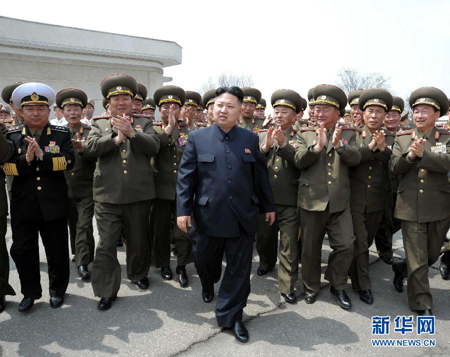 據朝中社7月18日報道,朝鮮人民軍最高司令官金正恩17日被授予元帥稱號。這是朝中社4月28日提供的金正恩(前)與朝鮮人民軍第655聯合部隊軍官在一起的照片。 新華社/朝中社