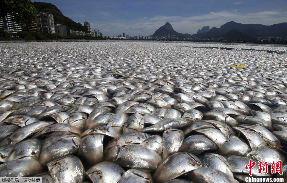 巴西里約湖泊現(xiàn)大量死魚 氣味腐臭難聞 ( /4)