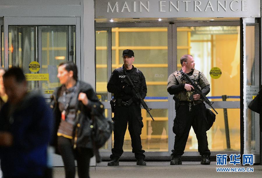 4月15日夜間,兩名警察徹夜封鎖美國波士頓布里格姆婦科醫(yī)院,該醫(yī)院收治著大量爆炸事件的傷亡人員。當(dāng)天,美國波士頓發(fā)生嚴(yán)重爆炸事件。新華社記者王雷攝