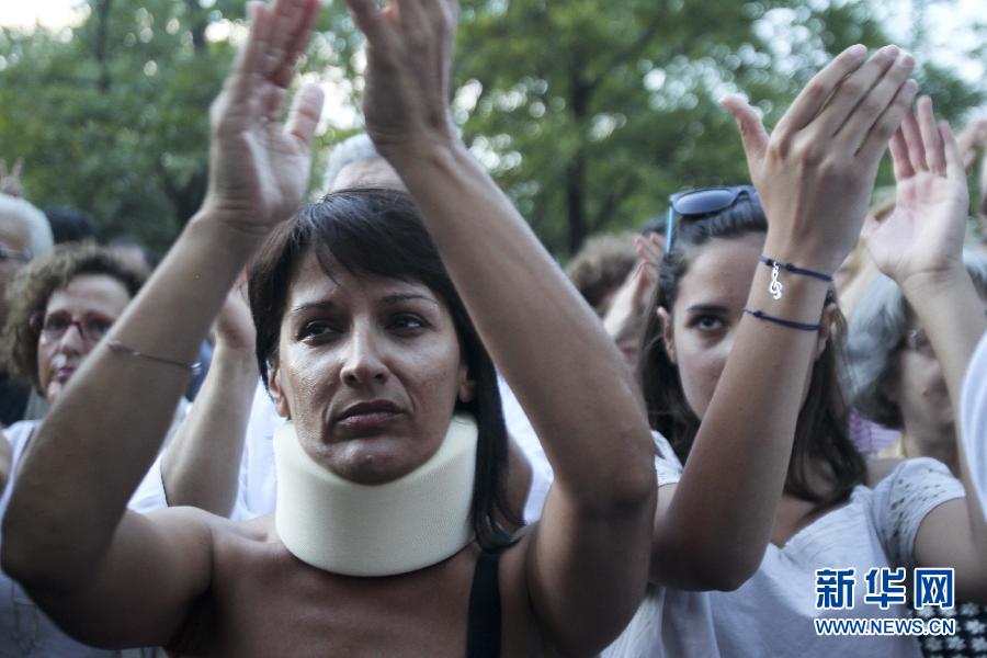 6月11日,在希臘首都雅典,人們聚集在國家廣播電視公司總部大樓前,抗議政府關(guān)閉國家廣播電視公司的決定。作為應(yīng)對債務(wù)危機(jī)的緊縮和改革措施的一部分,希臘政府11日宣布關(guān)閉國家廣播電視公司。希臘政府發(fā)言人凱蒂科格魯說,管理不善和腐敗是政府決定關(guān)閉這家公司的主要原因。他說,該公司每年要花掉納稅人3億歐元(約合24.5億元人民幣)資金,比類似的私營廣播電視公司高出7倍。希臘國家廣播電視公司成立于1938年,目前有3個全國性電視頻道和一個國際衛(wèi)星電視頻道,還有28家電臺,有員工近3000人。馬里奧斯·羅洛斯攝 圖片來源:新華網(wǎng)