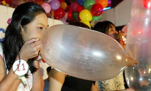 1、泰國“安全套小姐”選美。在泰國曼谷舉行的“亞太安全套小姐”選美會上,來自四個國家20名佳麗進行了一場激烈的“吹安全套”大PK。據大賽組織者介紹,該項選美的用意是在泰國促進“安全性意識”,以防范艾滋病。