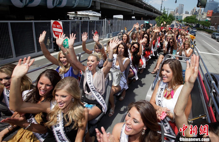 2011年5月25日,美國小姐參賽者游覽紐約,眾美女一同出行形成一道亮麗的風景線。她們將于6月19號在拉斯維加斯參加“美國小姐”的選美比賽。